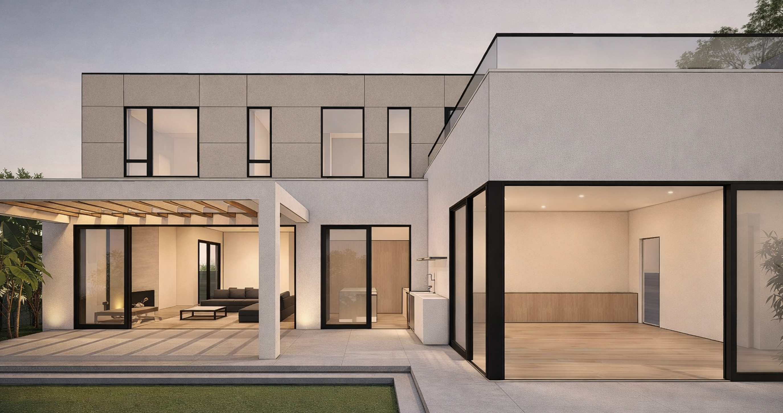 This project is an investment and development property consisting of a modern single-family residence with an attached ADU. The L-shaped floor plan creates a private outdoor patio, establishing a quiet and protected backyard space.